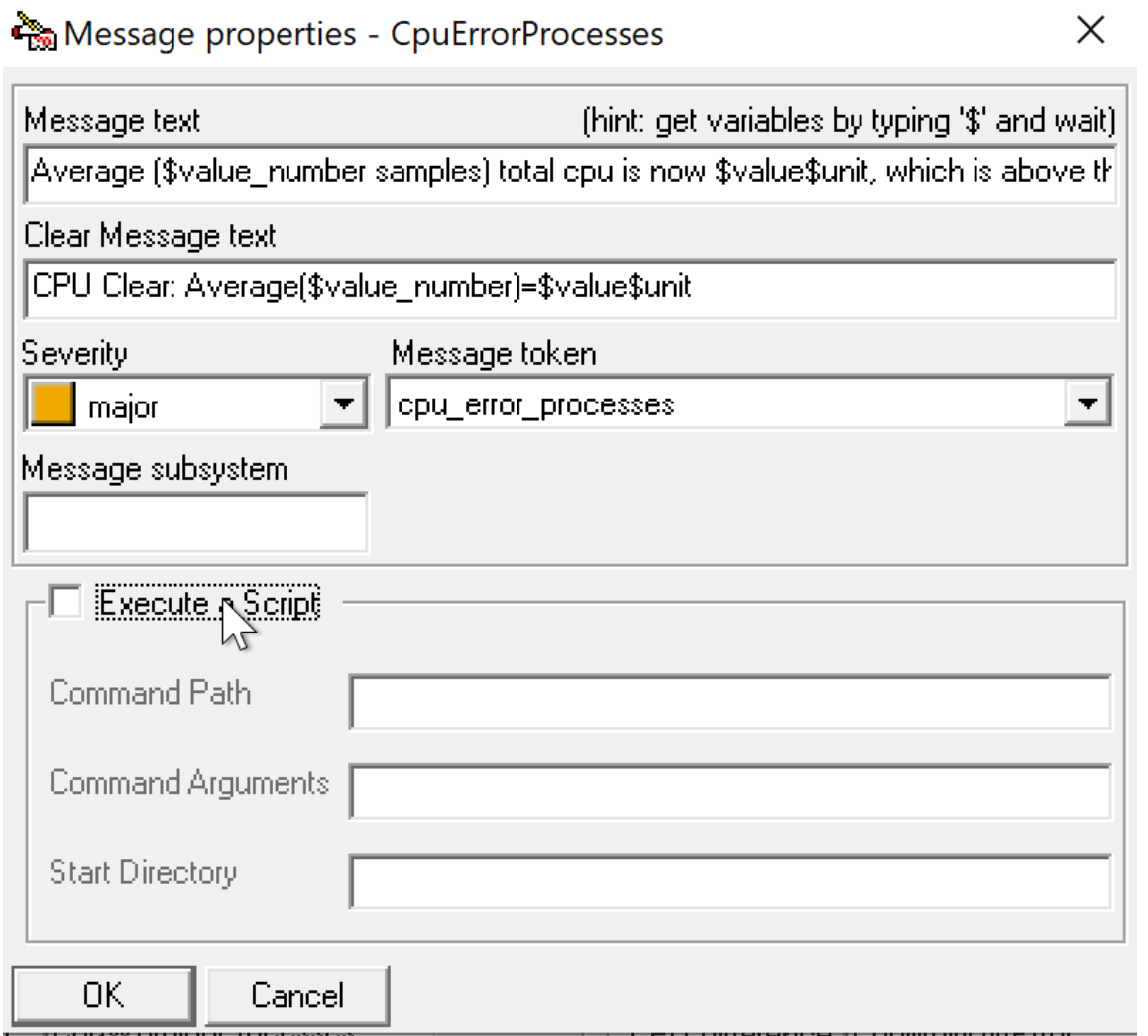 In this tab, locate the message that corresponds with the threshold you are interested in - for example, the "Major" threshold for CPU Usage as seen here corresponds to "CPUErrorProcesses":