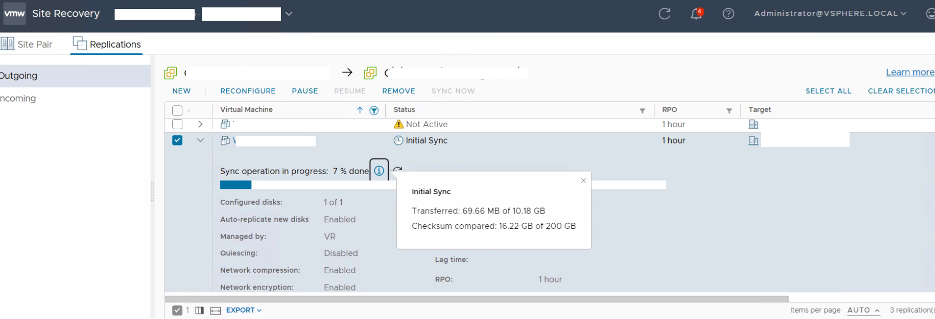 2025-01-28T12:16:30.108+05:30 verbose hbrsrv[2748298] [Originator@6876 sub=PropertyProvider] RecordOp ASSIGN: serverStats, HbrServer. Applied change to temp map.2025-01-28T12:16:32.365+05:30 info hbrsrv[2748277] [Originator@6876 sub=Delta] ClientConnection (ClientCnx '[Y.Y.Y.Y]:55936' id=3 <shut>) is stopping ...2025-01-28T12:16:32.365+05:30 info hbrsrv[2748277] [Originator@6876 sub=Asio] Closing LWD ASIO -> (plain text)2025-01-28T12:16:32.365+05:30 info hbrsrv[2748277] [Originator@6876 sub=Delta] HbrSrv cleaning out ClientConnection ([Y.Y.Y.Y]:55936)2025-01-28T12:16:32.365+05:30 error hbrsrv[2748277] [Originator@6876 sub=Main] HbrError stack:2025-01-28T12:16:32.365+05:30 error hbrsrv[2748277] [Originator@6876 sub=Main] [0] ClientConnection (client=[Y.Y.Y.Y]:55936) request callback failed: Connection reset by peer: The connection is terminated by the remote end with a reset packet. Usually, this is a sign of a network problem, timeout, or service overload.2025-01-28T12:16:32.365+05:30 error hbrsrv[2748277] [Originator@6876 sub=Main] [1] Dropping error encountered from network(Note: In above logs Y.Y.Y.Y is the Source ESXi vmkernel where replication traffic is enabled)