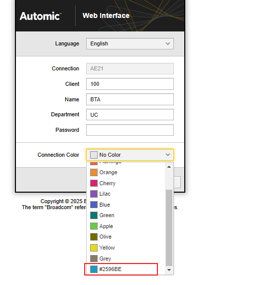 The RGB HEX color code still shows up from the "Connection color" of AWI instead of just the name of the color.