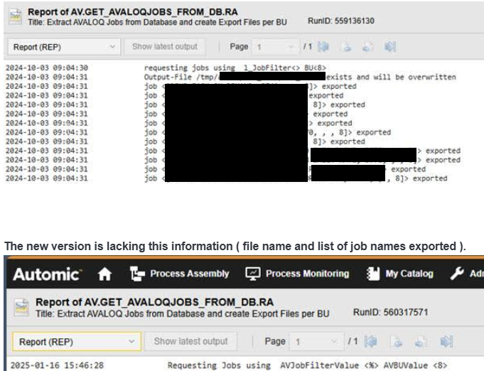 Additionally, some information about the jobs that had been exported from Avaloq to AE that had previously been written to the Report are now written to the Agent Log instead.