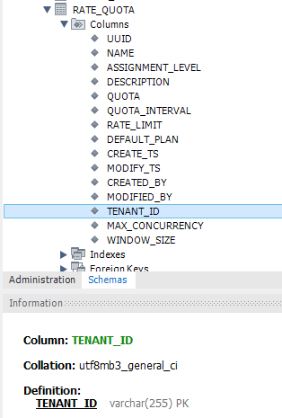 When checked the table RATE_QUOTA, found that it's using utf8mb3 collatioin,