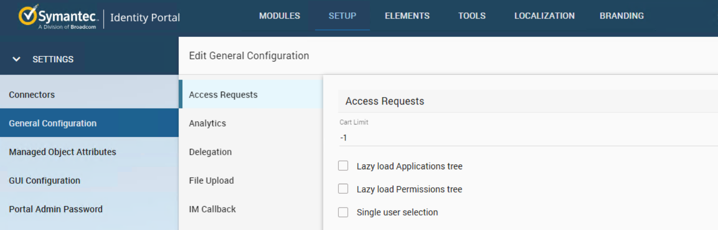 The Portal can take minutes to load and display thousands of Permissions, to improve this performance we added 2 configuration options, Lazy load Applications tree, and Lazy load Permissions tree, to prevent Portal from loading all permissions before displaying them.