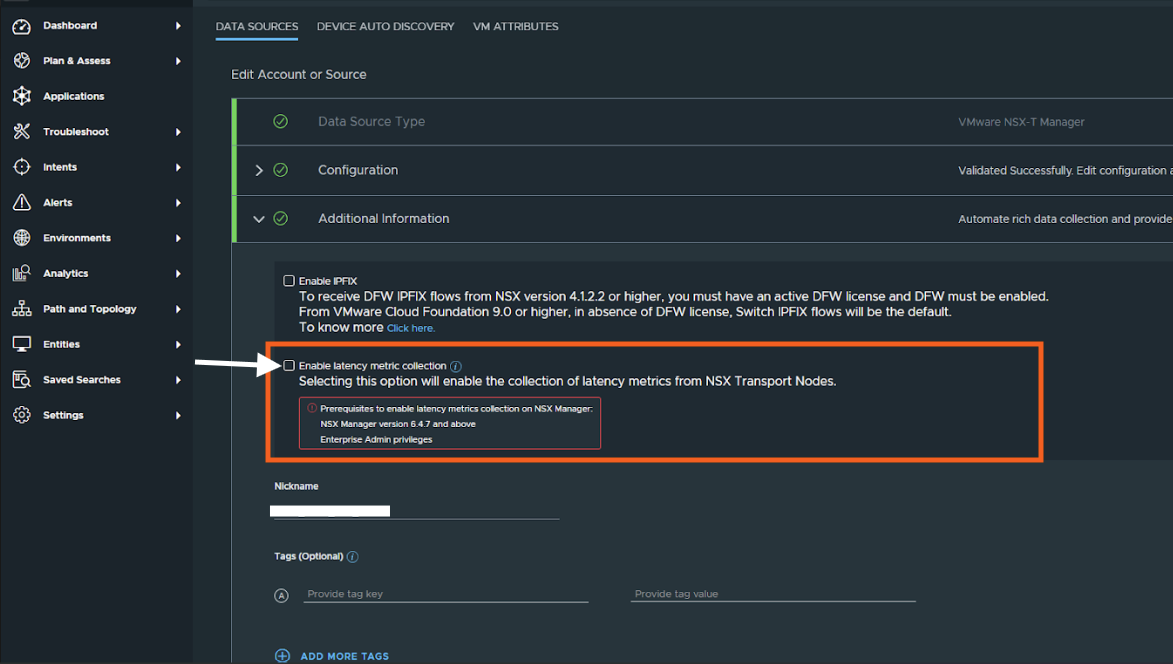 Now wait for 30 minutes and Check this again ("Enable Latency metric collection" ) by editing the NSX-T datasource.