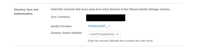 We can check the Directory Search Attribute in vIDM in the Administration Portal under Identity & Access Management - Directories - Selecting your Directory Name