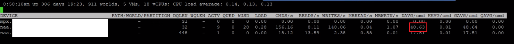 To identify storage performance issues on ESXi on per lun basis refer to this article: Using esxtop to identify storage performance issues for ESXi