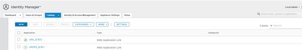 Integrating Identity Manager with applications using Aria Suite Lifecycle creates an entry in the Catalog of Identity Manager for the particular application you are integrating.