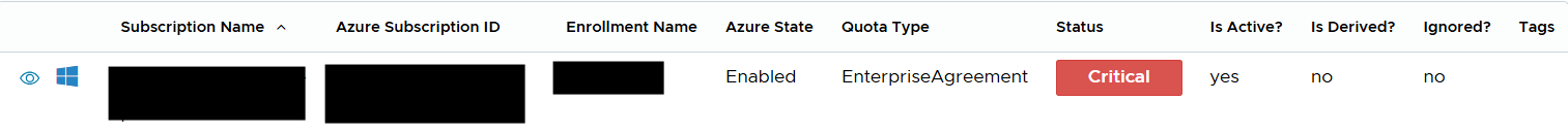 If a subscription is associated with an SP mapped to the Enterprise Agreement (EA), but the SP lacks reader role access, the subscription status will be marked as 'critical' due to insufficient permissions.