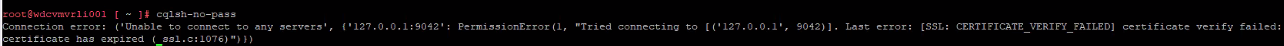 echo "" | keytool -list -keystore /usr/lib/loginsight/application/etc/3rd_config/keystore -rfc 2> /dev/null | openssl x509 -noout -enddateThe following command also issued to show that database is not accessible due to certificate issue: