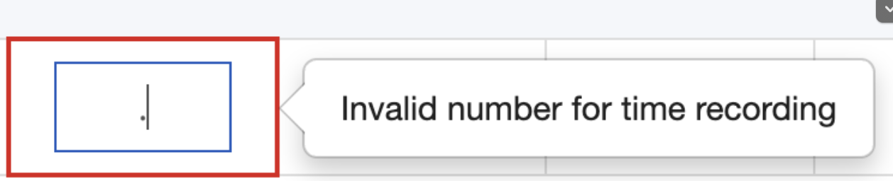 When entering hours in timesheet with decimal in starting, eg. ".5", it shows message as "Invalid Number for Time Recording".