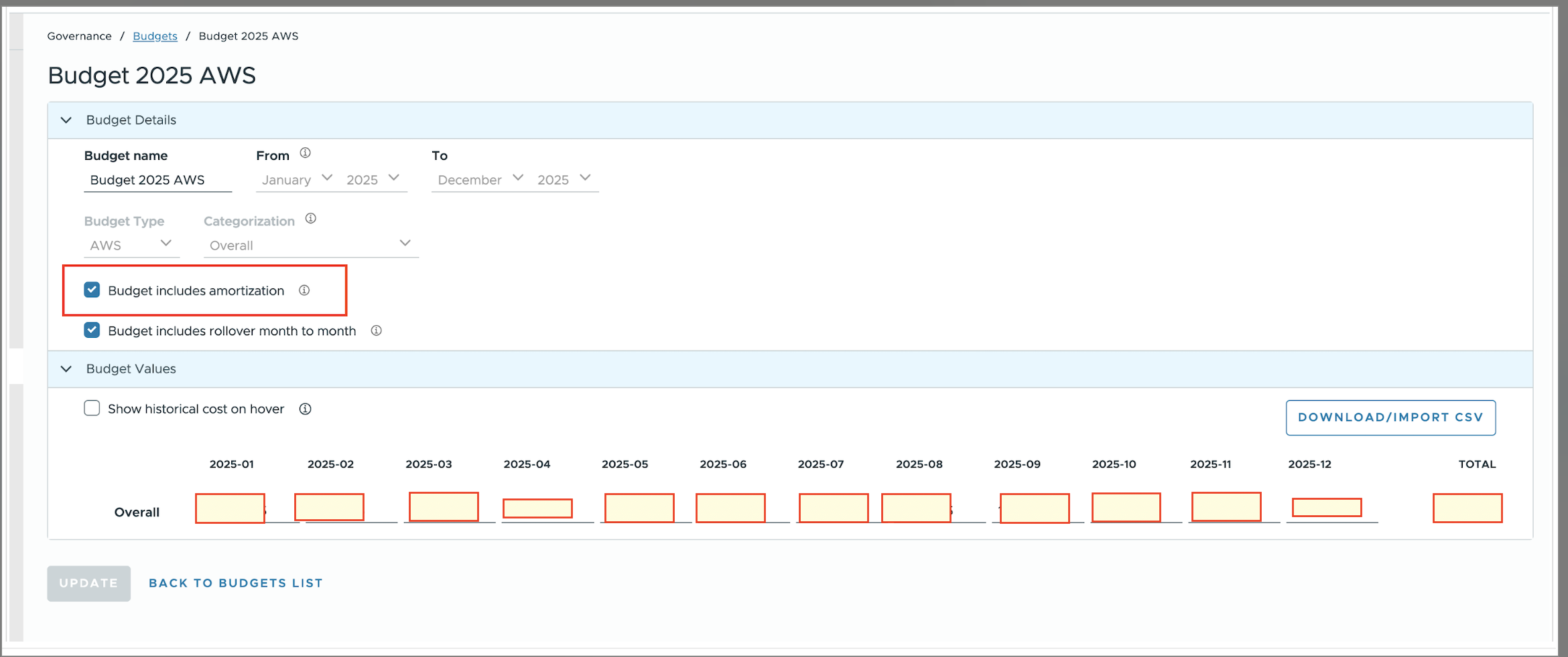 The Azure budget not appearing within the Forecasting reporting is due to amortization not being supported in those reports.