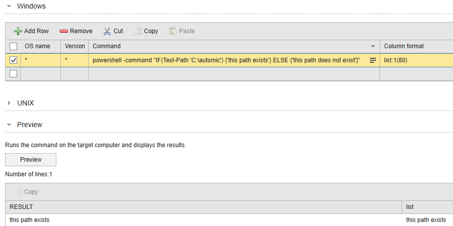 powershell -command "IF(Test-Path 'C:\automic') {write-output 'this path exists'} ELSE {Write-Output 'this path does not exist'}"