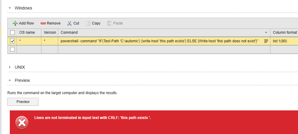 U01002531 Lines are not terminated in input text with CRLF: 'this path exists '.
