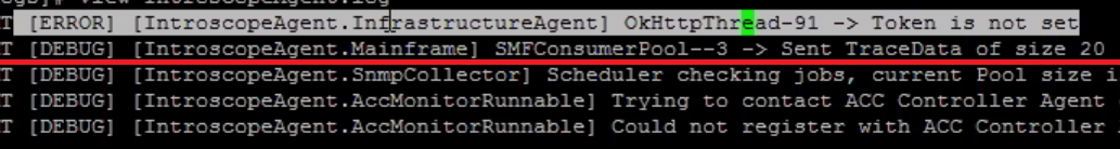 Unable to see the mainframe APM transaction traces, ERROR : Token is not set