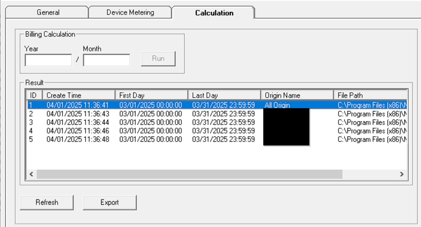 Highlight the "All Origin" line and click "Export" to export the full Usage Metering report. You will be prompted for a location to save the file in HTML format.