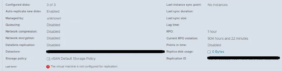 - Other VMs are replicating fine with no issues, and new VMs can also be configured for replication.