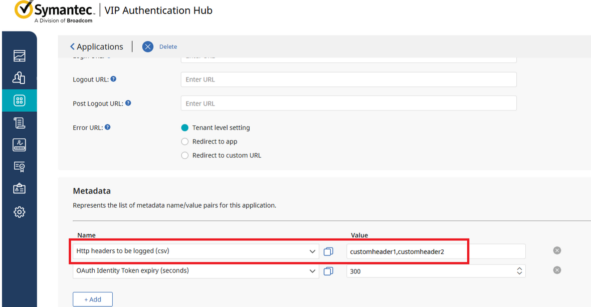The Http headers to be logged (csv) application metadata attribute is explained in the Release Notes 3.3.2 - Fixed Issues.
