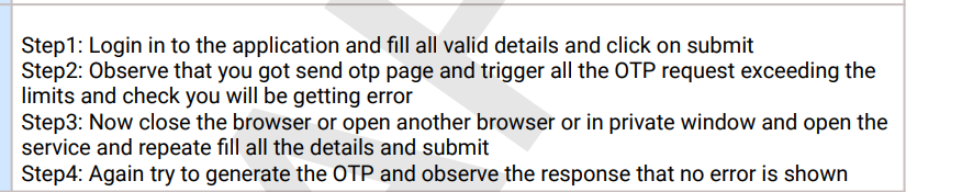 One of the customer's Security Team has reported an issue with OTP generation for forgotten password, as it's generating the OTP on a session-based and not on used user-based. They suggested implementing OTP generation on User user-based. The steps for replicating the issue.