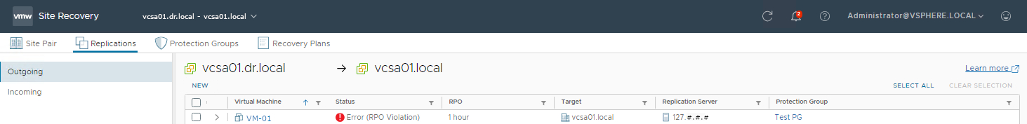 RPO violation error seen for replicated VMs in newly deployed VR environment