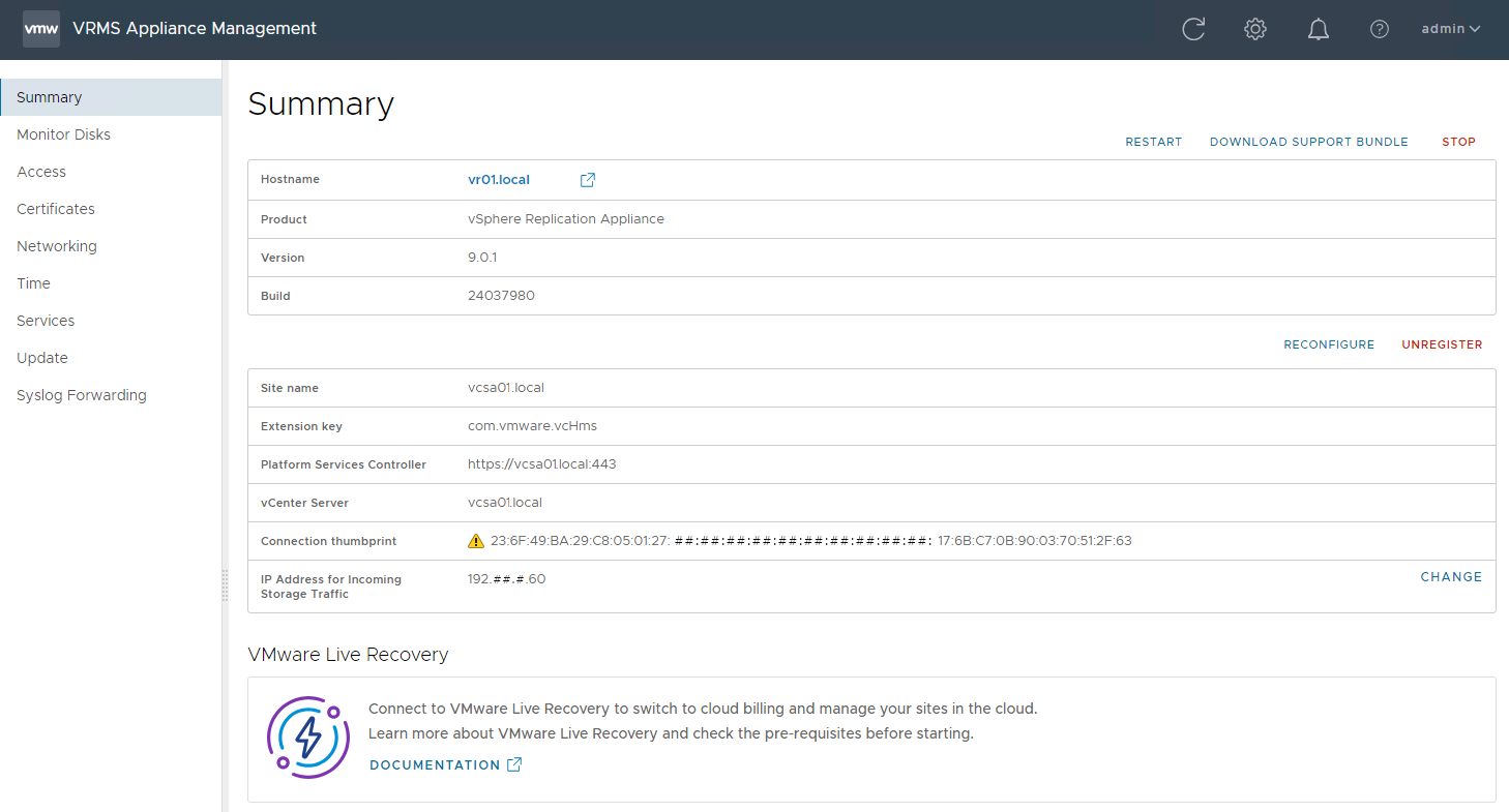 Open VAMI webpage (https://<FQDN or IP of VR appliance>:5480) for embedded and addon appliance to validate the difference.