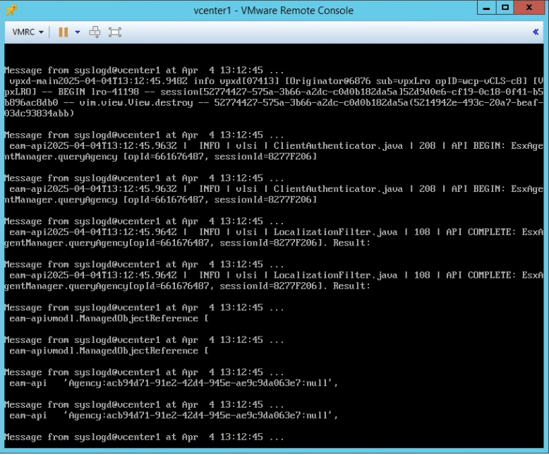 On following the instructions of KB https://knowledge.broadcom.com/external/article/345261/ to edit the syslog.conf file, as sum as rsyslog service is restarted the SSH session or the vCenter CLI via console is flooded wiht log messages.