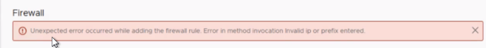 When attempting to add, edit, remove or reorder a firewall rule, the following error appears in the VAMI: