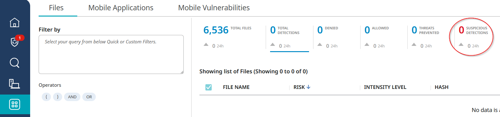 If no files are categorized as Suspicious Detections, the hide option cannot be used.
