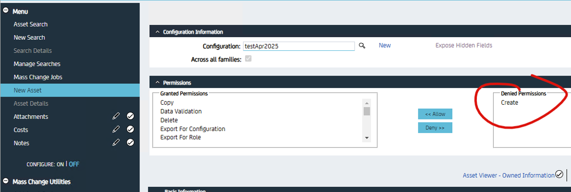 2. Move "Create" from Granted Permissions to Denied Permissions