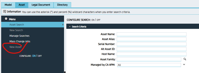 7. Log in as the user with the modified role. The "New Asset" will be grayed out.