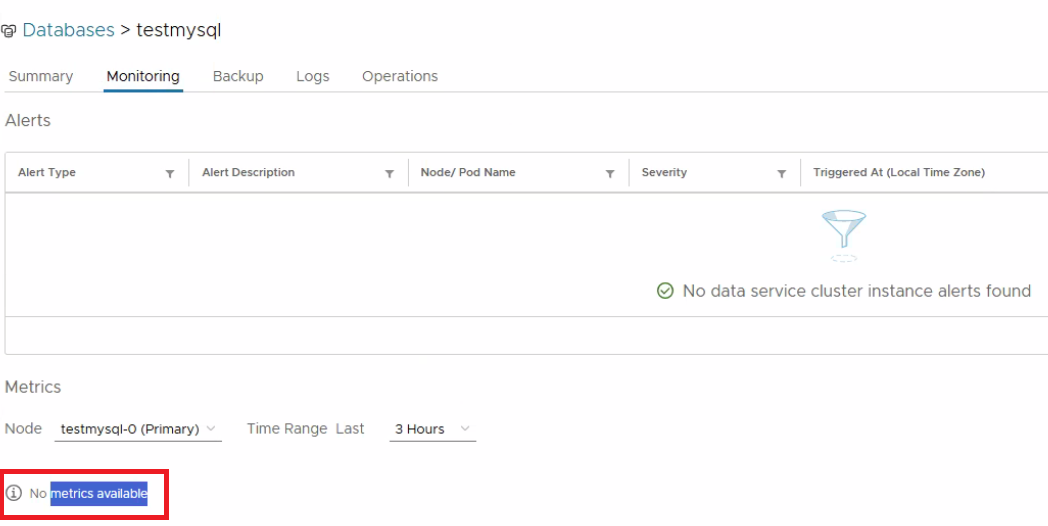 However, MySQL and Postgres instances created with DSM UI can show monitoring metrics.