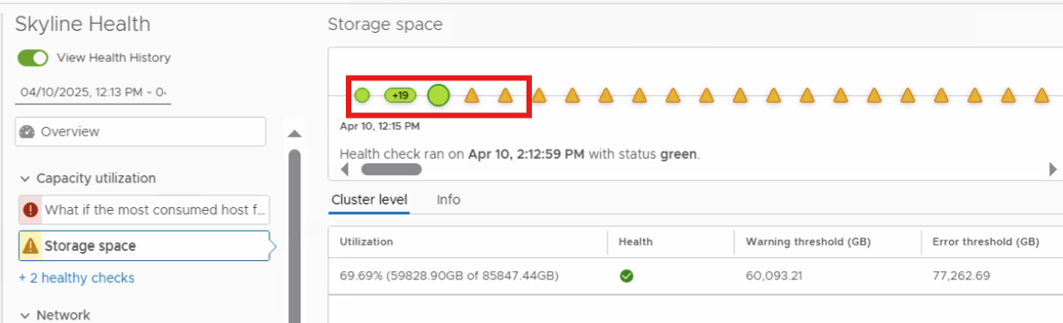 The vSAN Skyline Health Test History show that the utilization was spiked in a short period.