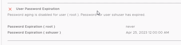 VIDM health shows unhealthy due to expired "root" and/or "sshuser" password.