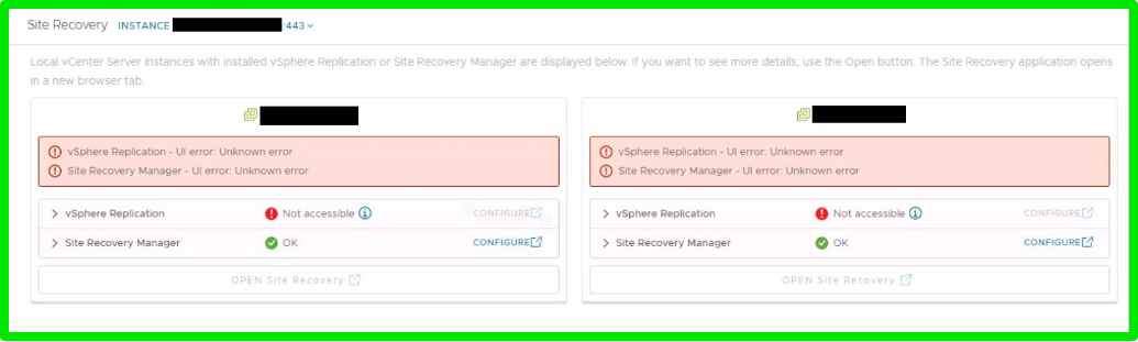 2. vSphere Replication or Site Recovery Manager plugin in vCenter shows Not accessible