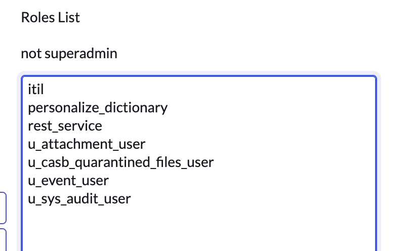 Sample screenshot of user roles that are required: