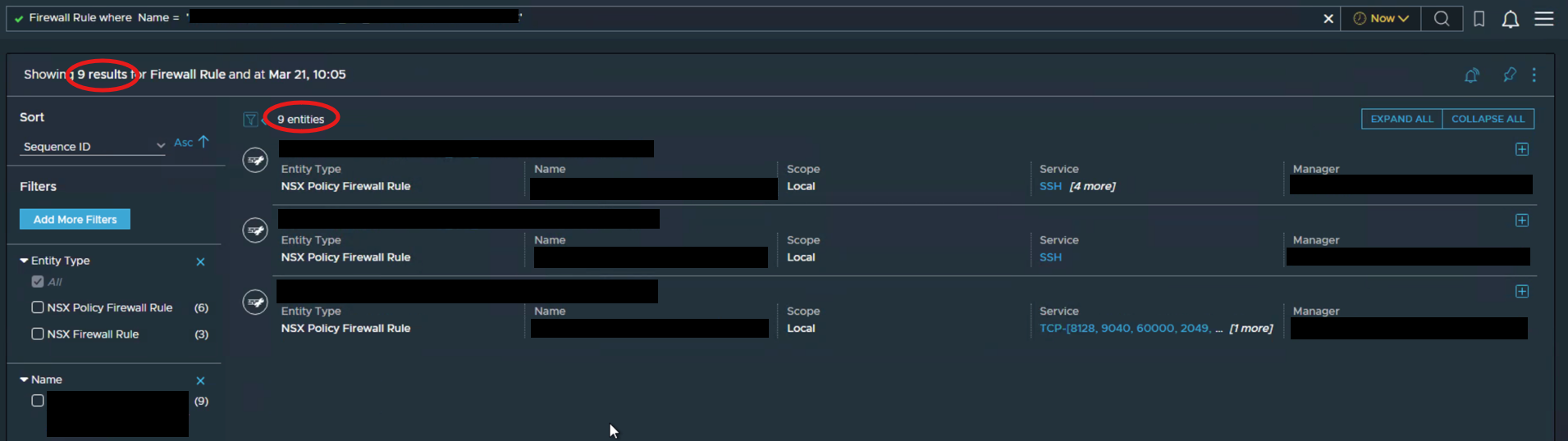 You may also see a mismatch when searching for a particular firewall rule by name between the number of results and the actual records displayed.