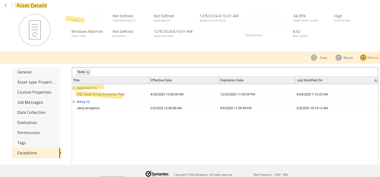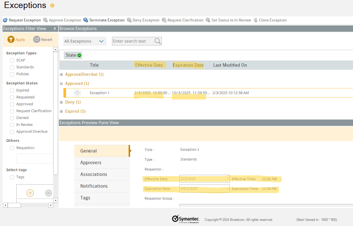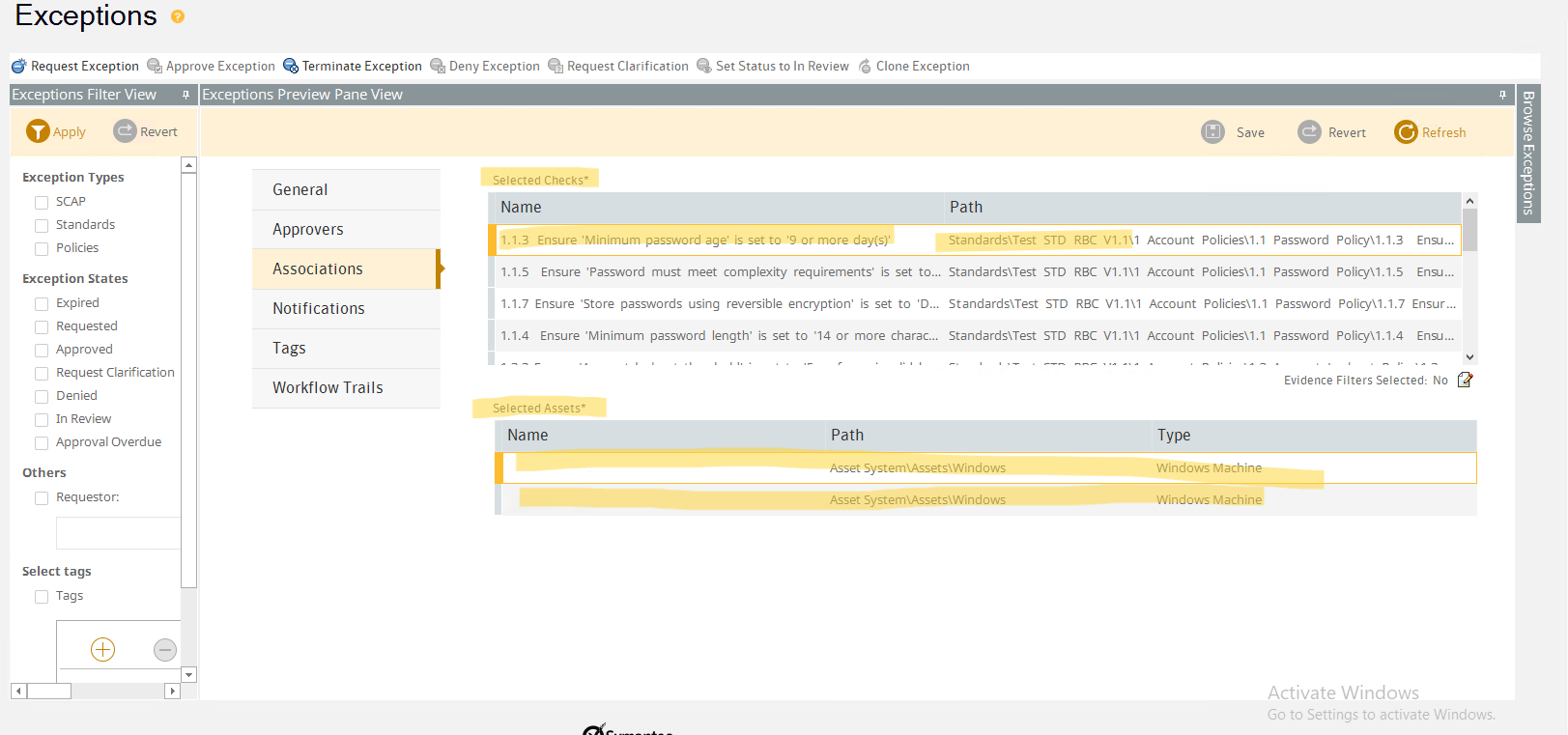 Either the exception has expired and is no longer in the approved stage, or the assets are not included in the "Selected Assets" portion of the exception
