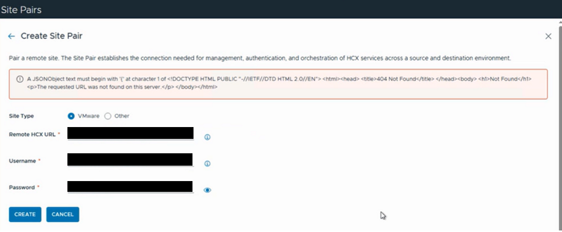 Ensure clocks are in sync from the on-Premise/Source HCX site and the Target/Cloud HCX sites. Because HCX will be configured to use vCenter SSO and authentication is required for the site pairing, the remote HCX and remote vCenter clocks need to be in sync with the on-Premise HCX Server during the site pairing operation. Reference the following documentation for exact steps.