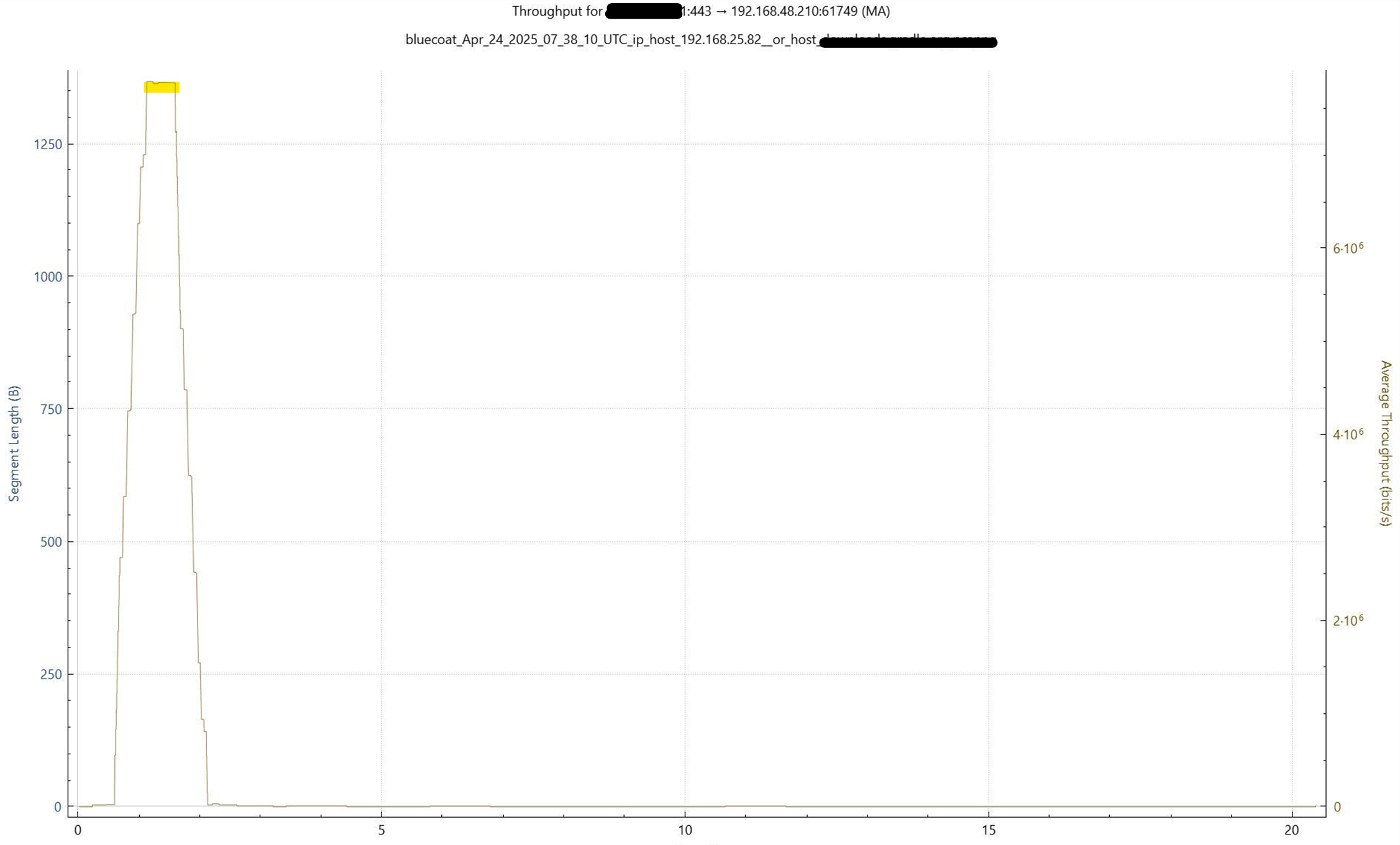 Although the download was slow, we let it run for about 30 seconds to capture enough data to analyse. Analysing the data showed conclusively that the throughput was being throttled. In the following Wireshark throughput graph the throughput starts off quickly, ramps up to a peak of maximum 7mbps and just sits there until the connection was closed. There are no TCP drops/retransmissions at the time, and the network is behaving well.