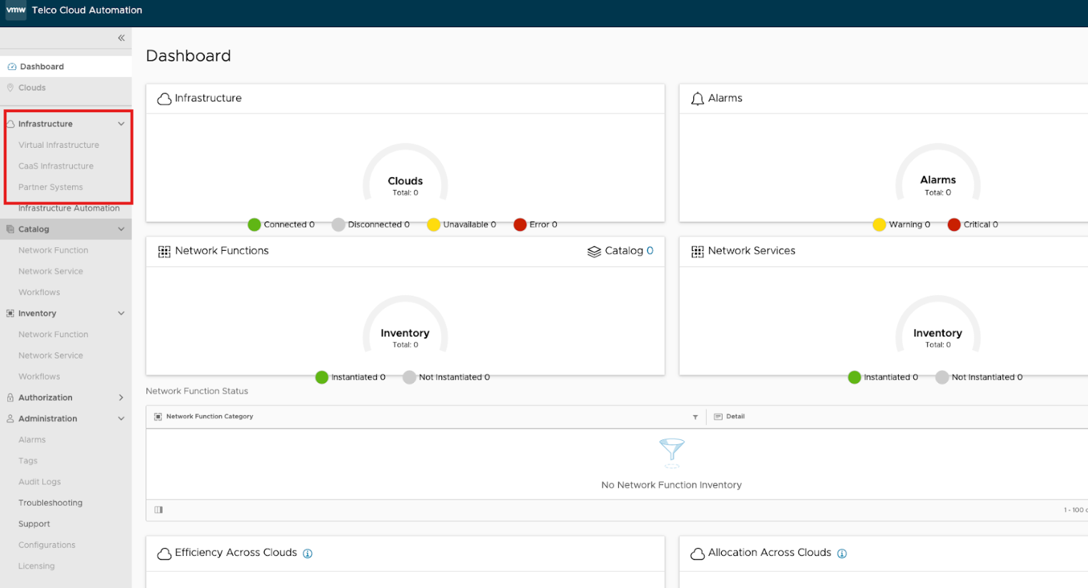 - After the initial deployment of TCA, the "Virtual Infrastructure" is greyed out even though license is applied.