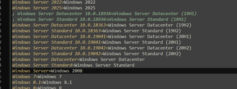 During Console startup, it reads this file - parsing it from top to bottom, and gets the FIRST matched item (as it detects "Windows Server 2025 Standard" - before changes - since it was matching from file only "Windows Server" therefore it was displaying the "Windows 2008" as client OS).