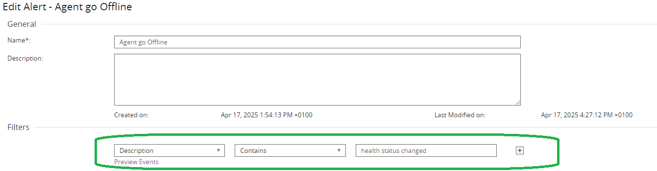 The customer would like to generate alert when DCS agent health status changes.