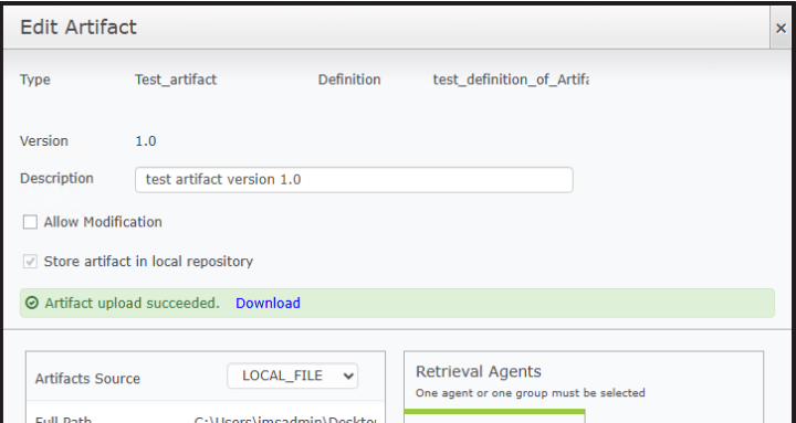 During the creation of a new artifact and selecting “Store artifact in local repository”, the artifact is created and stored in the configured repository (Nexus on this case):