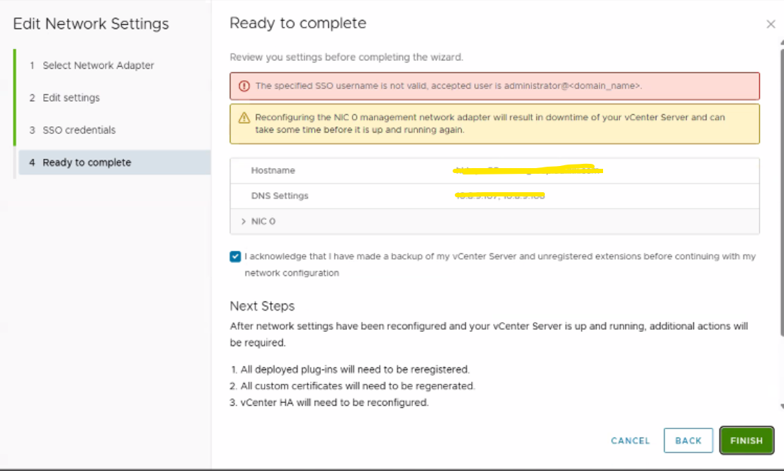 When tried to change the PNID to a temporary FQDN after creating DNS entry facing below error: