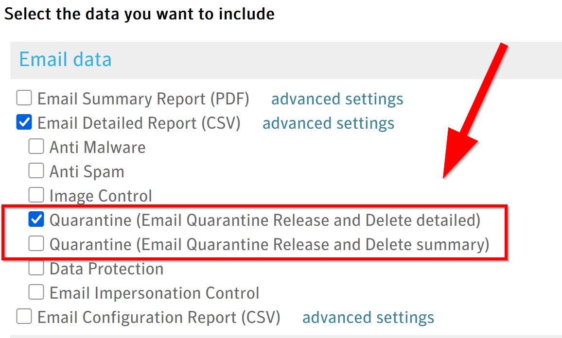 3 - Under Email detailed report, select : Quarantine (Email Quarantine Release and Delete detailed)