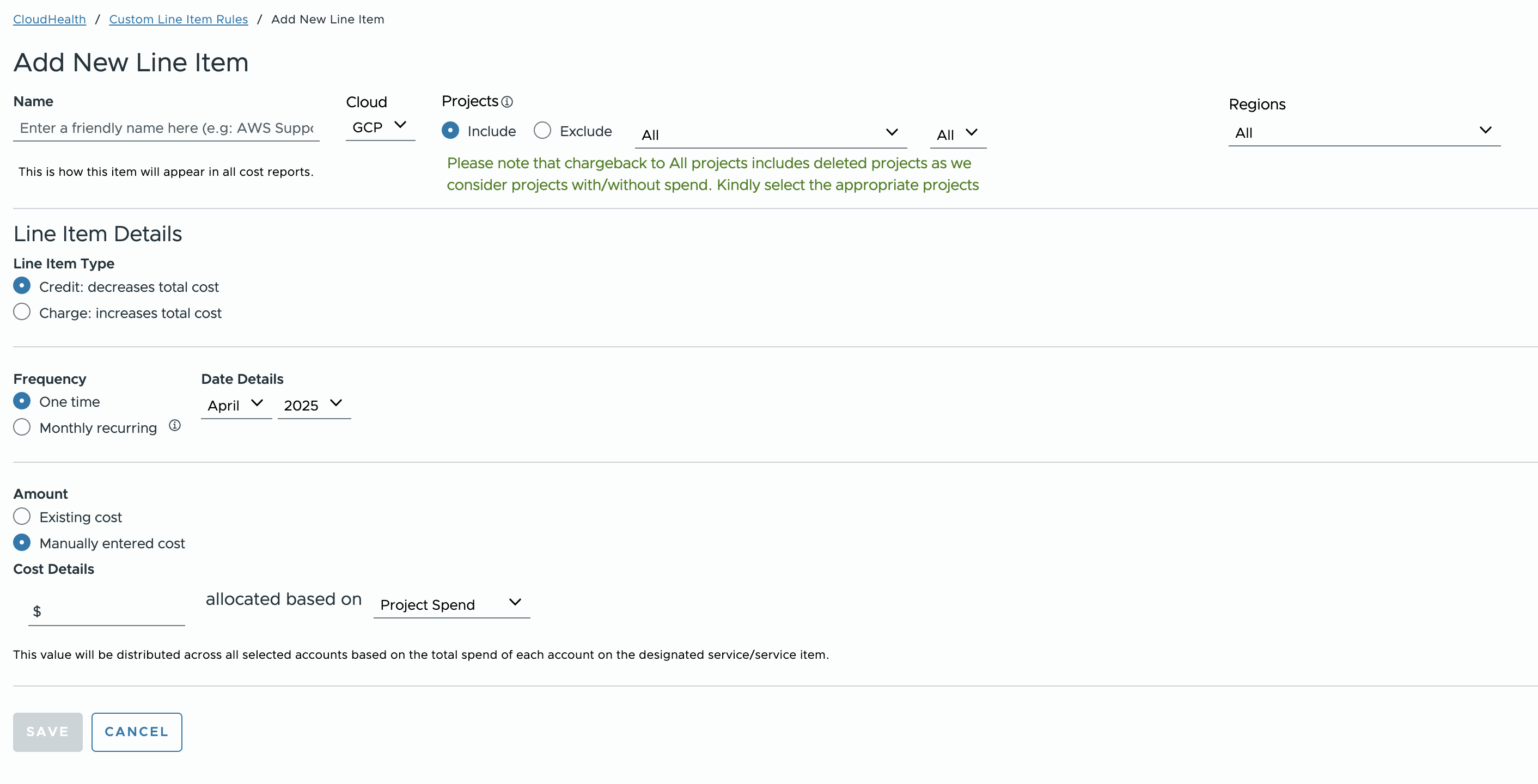 The recommended workaround is to create a Custom Line Item (CLI) Rule credit that will get distributed across all selected projects based on the total spend of each project as shown below: https://apps.cloudhealthtech.com/ui/chargeback-rules/add