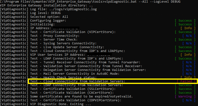 vipdiagnostic log reported failure on "Cloud Connectivity from Validation Servers" portion