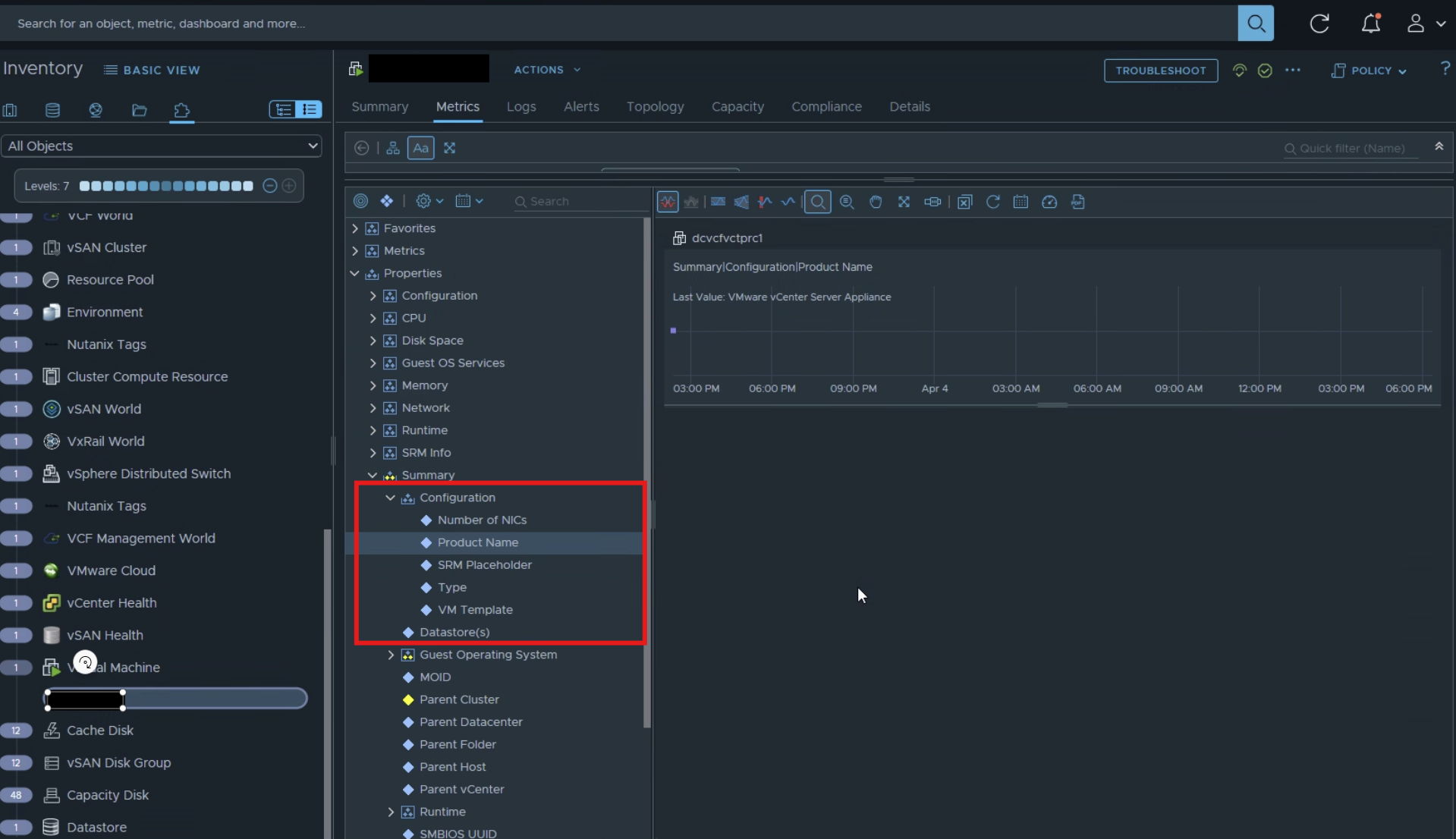 'Summary|configuration|Product Name' property details for a VM in Aria Operations are fetched from the vCenter MOB page: https://vCenterFQDN/mob/?moid=vm-##&doPath=summary.config.product