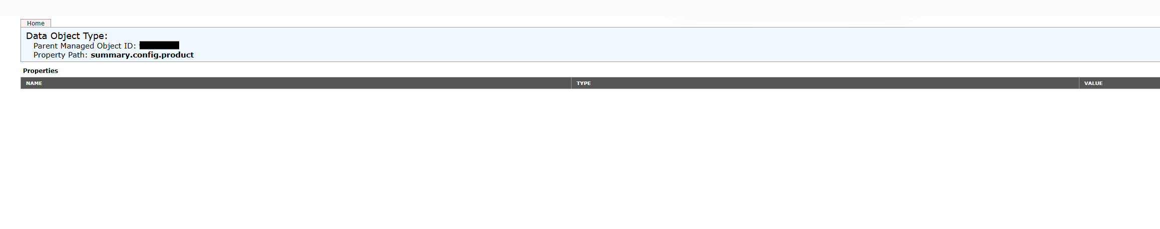 This issue occurs if the VM property details are not present in vCenter MOB page for the vCenter VMs when we try to access summary.config.product page.