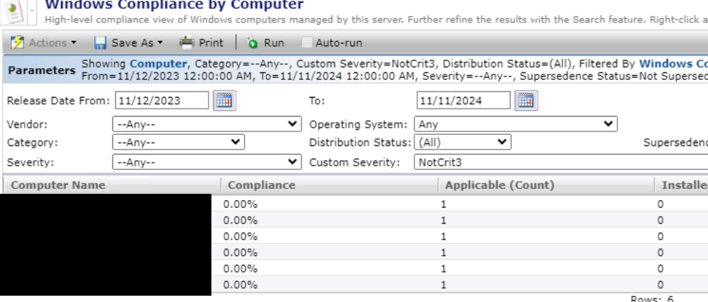 - Then open Windows Compliance by Computer, where you can specify the Custom Severity parameter, and set it to our custom value so the report would have filtered results: