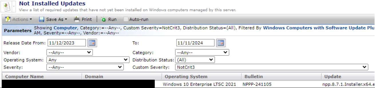 - Assign custom severity to a few random bulletins. In this sample, you have assigned NotCrit3 to NP++.