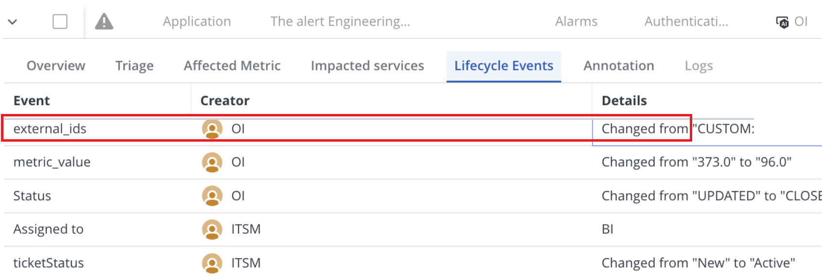 For some reason, the "external_ids" show it linked to particular agents, rather than the OI alarm metric.